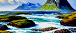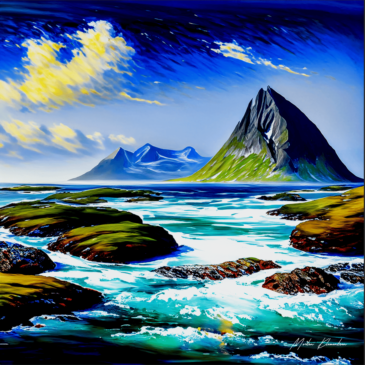 This artwork evokes the solitude and majesty of Norway's northernmost frontier. Capturing not just the geography, but the mythology of North Cape, the image reflects the meeting point of two great seas—where the Atlantic folds into the Arctic, and travelers stand on the edge of Europe gazing toward infinity. There’s a cinematic stillness here, and the feeling of both belonging and being utterly alone.