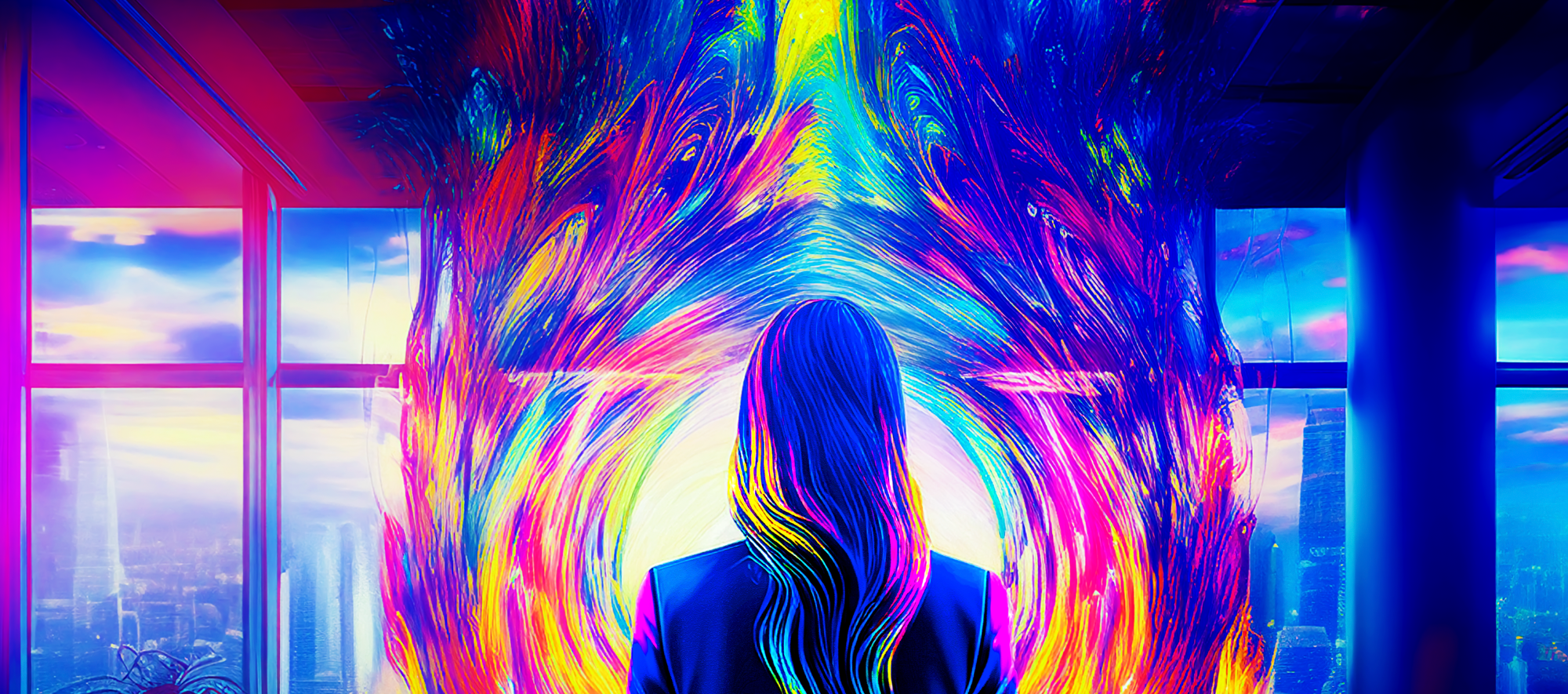 "AURA" dives into the metaphysical with a visually rich interpretation of human energy fields. This piece suggests that every individual radiates an invisible yet vibrant presence—a sentiment drawn from esoteric, spiritual, and intuitive traditions.