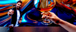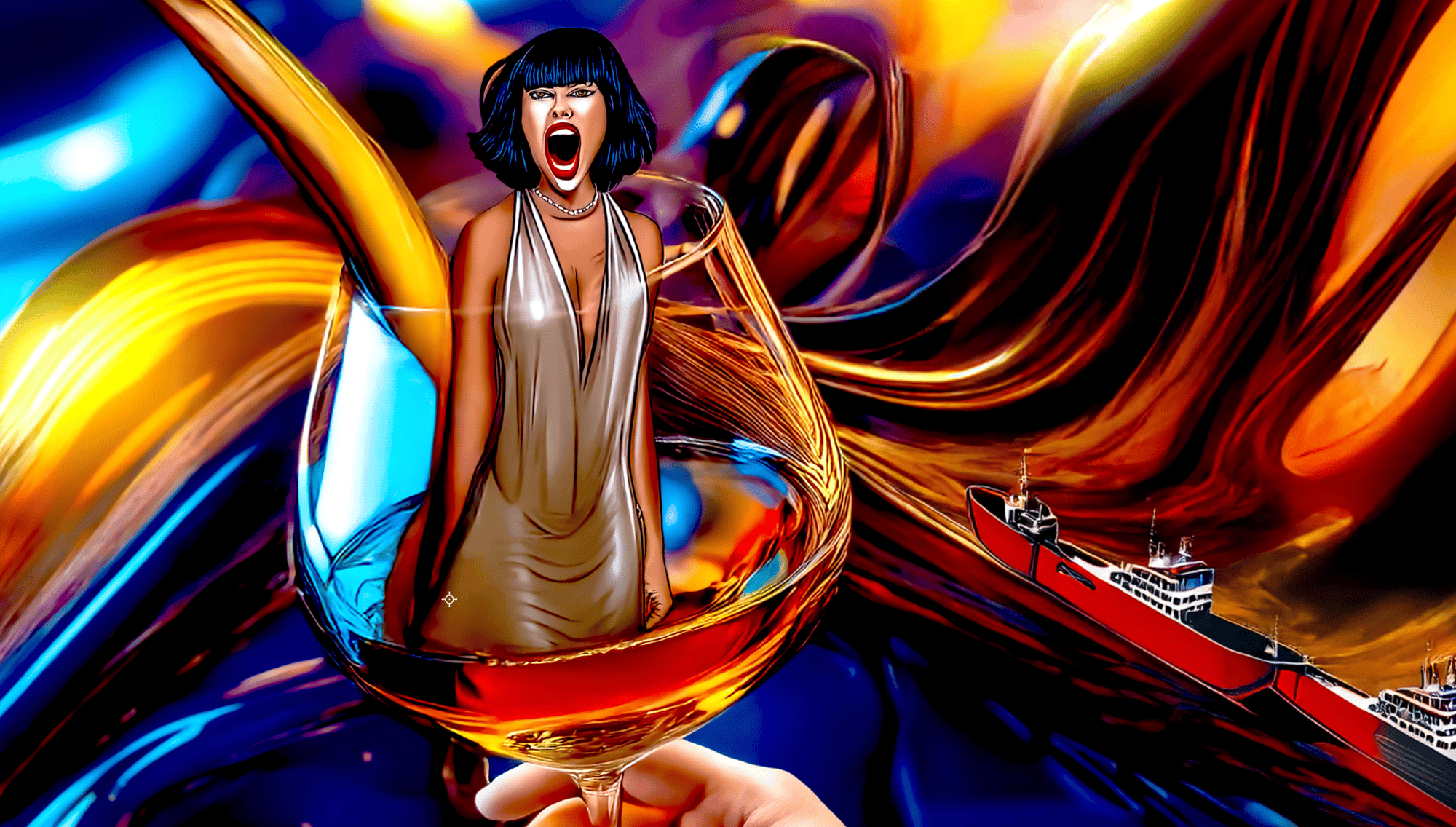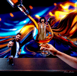 In “Cognitive Cognac: The Last Drink,” digital artist @klemenza.art (aka @Morten Klementsen) captures a raw moment of emotional collapse and dependence. A man, trapped in the chaos of alcoholism, pours one last drink—a desperate attempt to drown his internal storm. His wife, trapped within the glass, screams in fury, trapped in a world she can no longer control. The bright colors and chaotic storm that swirl around them represent both the emotional turmoil of addiction and the inevitable consequences that follow.