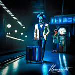 On the platform to “Destination Unknown,” he forgets to take it off.