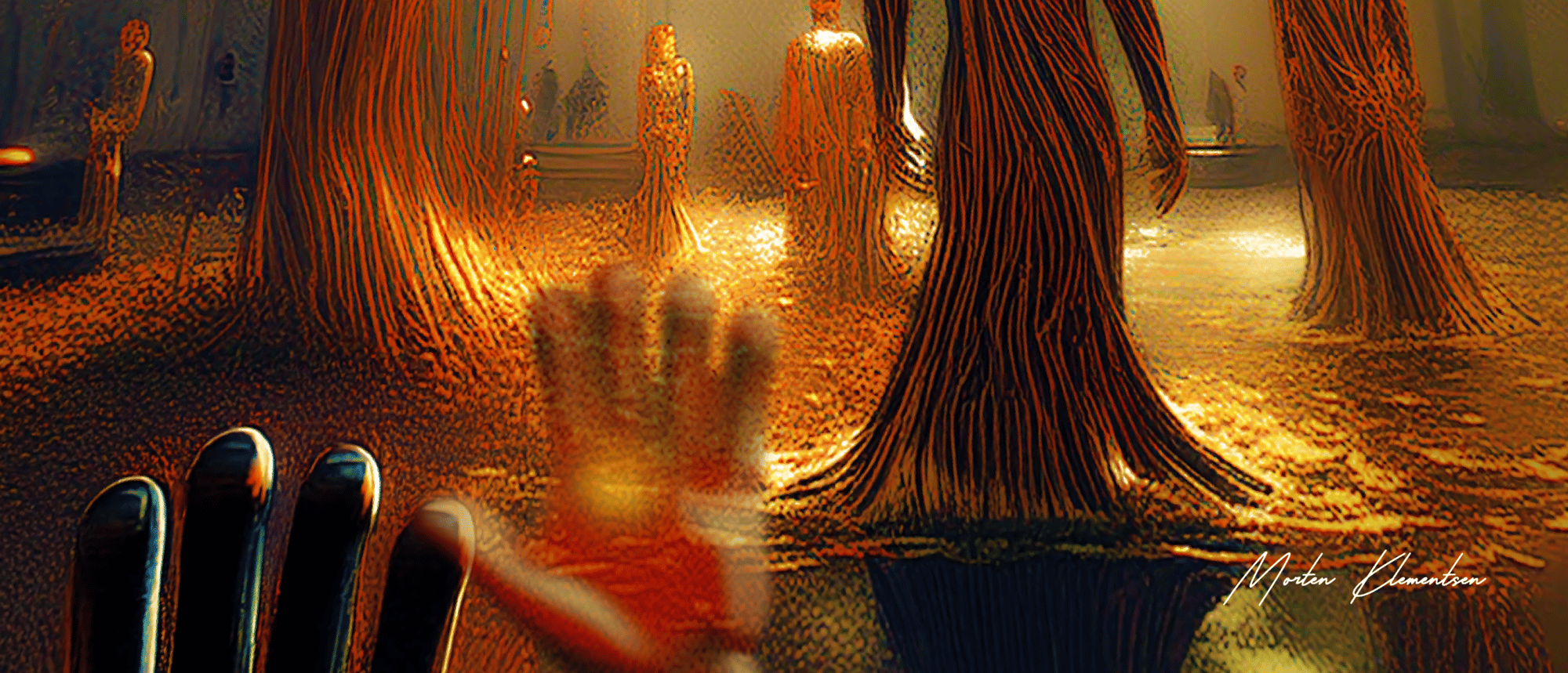 We are in the old city of Rome. Here they have created a sculpture park for and by the souls who remained on earth - for various reasons. The park is not dangerous to walk in, and many people use it for picnics or to find peace and quiet. The artists behind the work you see in this piece of art can tell you that it was a difficult task to visualize this park. They wanted the park to also be used by the inhabitants, and part of the vision is that you can "visit" your own dead and missing people in this park. Death as a theme is not dangerous. It is nice and good, and we humans are all born to die someday. That's just the way it is. The park is also widely used because they have managed to create a subtle emotional feeling and presence here. Sometimes you might wonder if this is some kind of medium's place where you can talk to your loved ones who have left this earth. Maybe it is? Who knows?