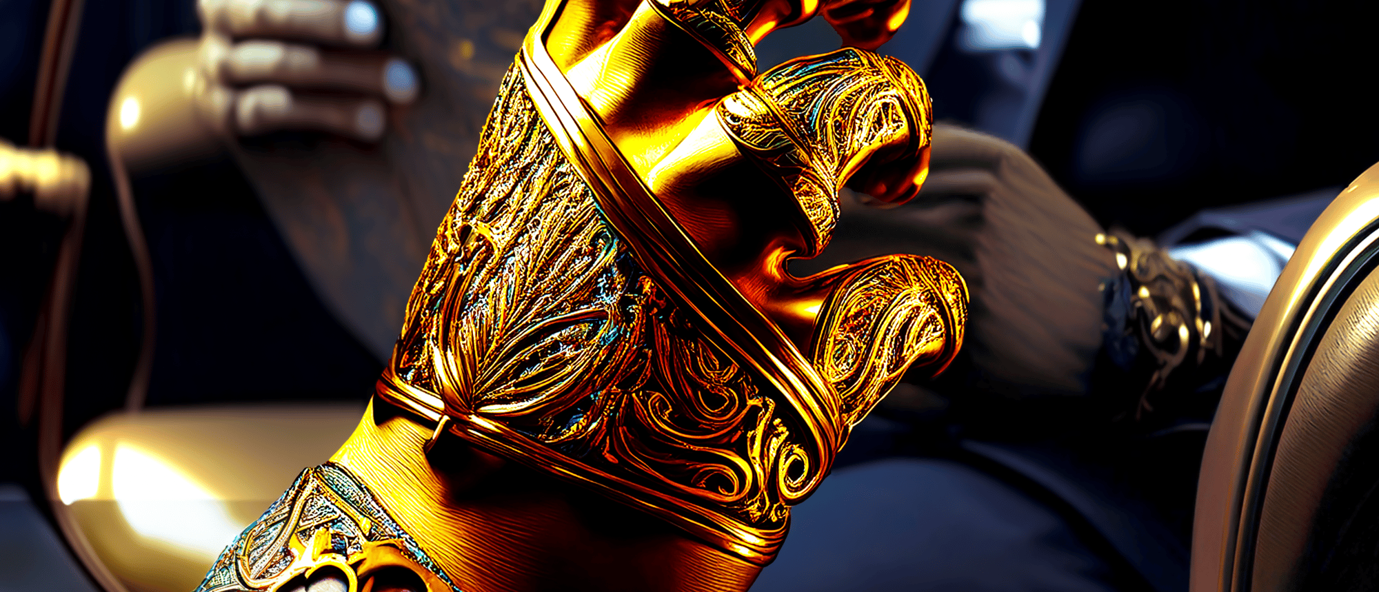 In the shadows of power and wealth lies Goldhand—feared by all, known to none. With a gloved hand forged in pure gold and diamonds, he leaves behind a legacy of chaos, control, and fear. This artwork captures the raw intensity of his dominance, showcasing a figure whose touch commands the world beneath him. But can the long arm of the law reach a golden arm that moves like a ghost?
