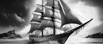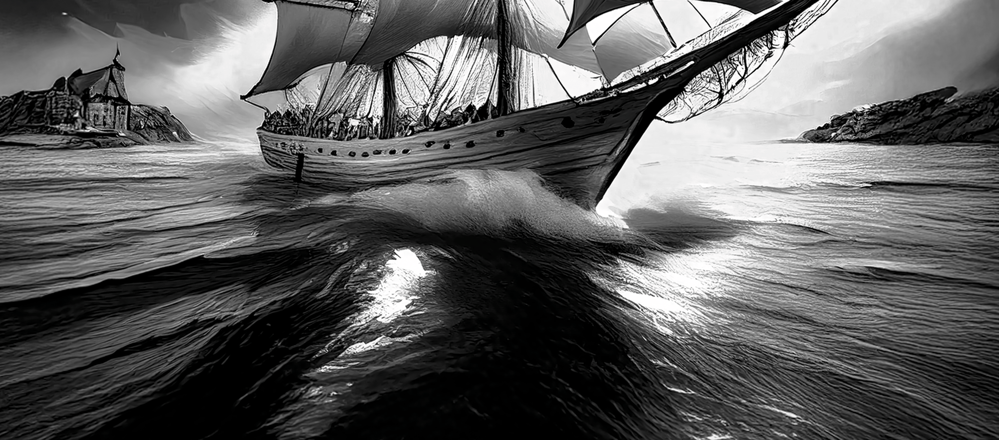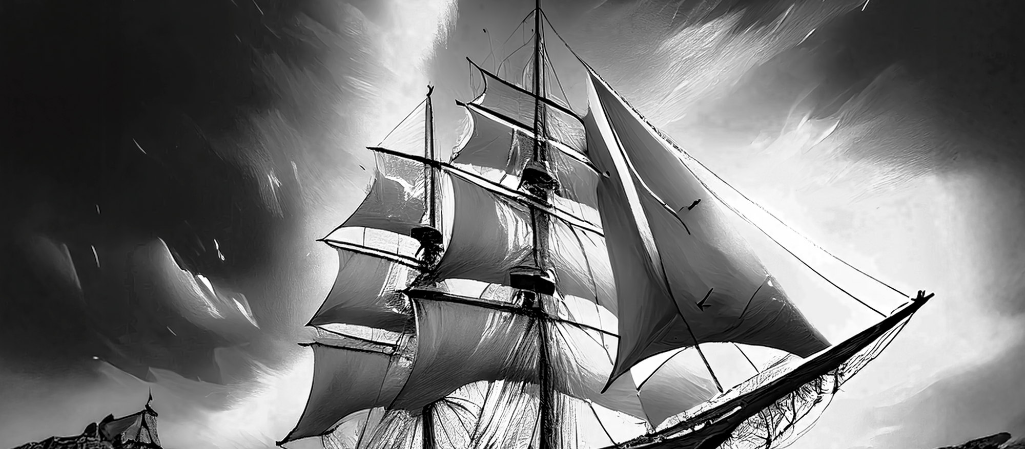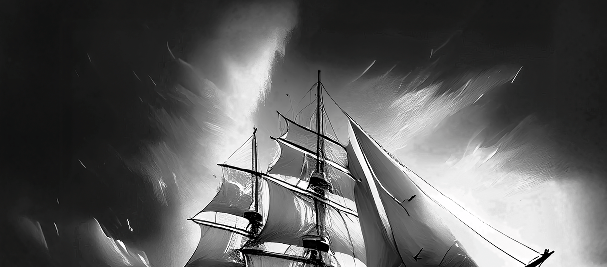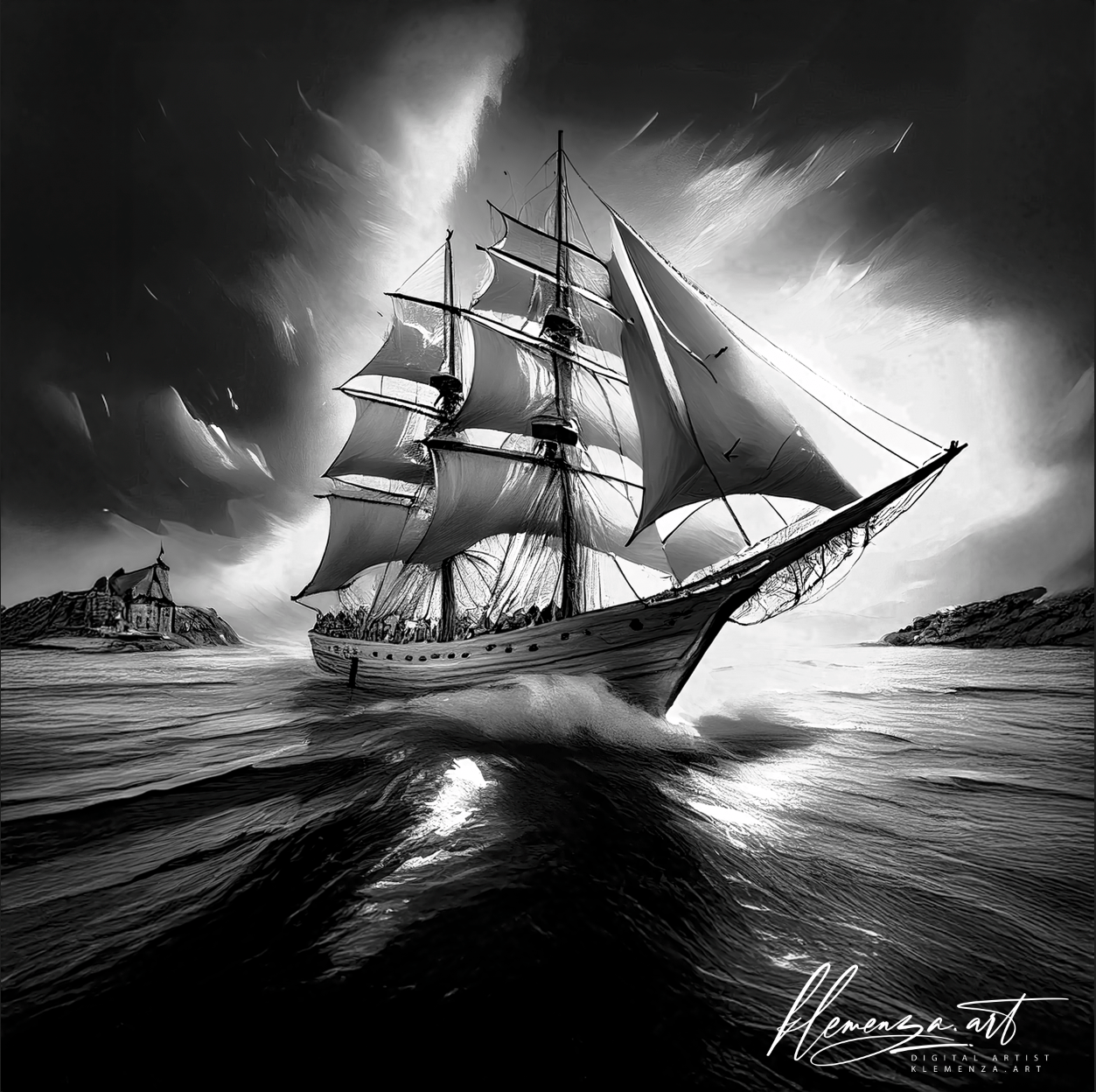 🎨 Curatorial Review : A monument to heritage and endurance, HANSANA captures a frozen instant between power and fragility — a ship wrestling both sea and light. The absence of color amplifies presence: every wave, sail, and shadow speaks of legacy and the silence between generations. Dedicated to my grandfather, Marius August Klementsen, this piece honors those who braved the grey northern waters where courage met solitude. The ship sails not only toward land but through time itself — carrying the memory of those who refused to yield to the horizon.