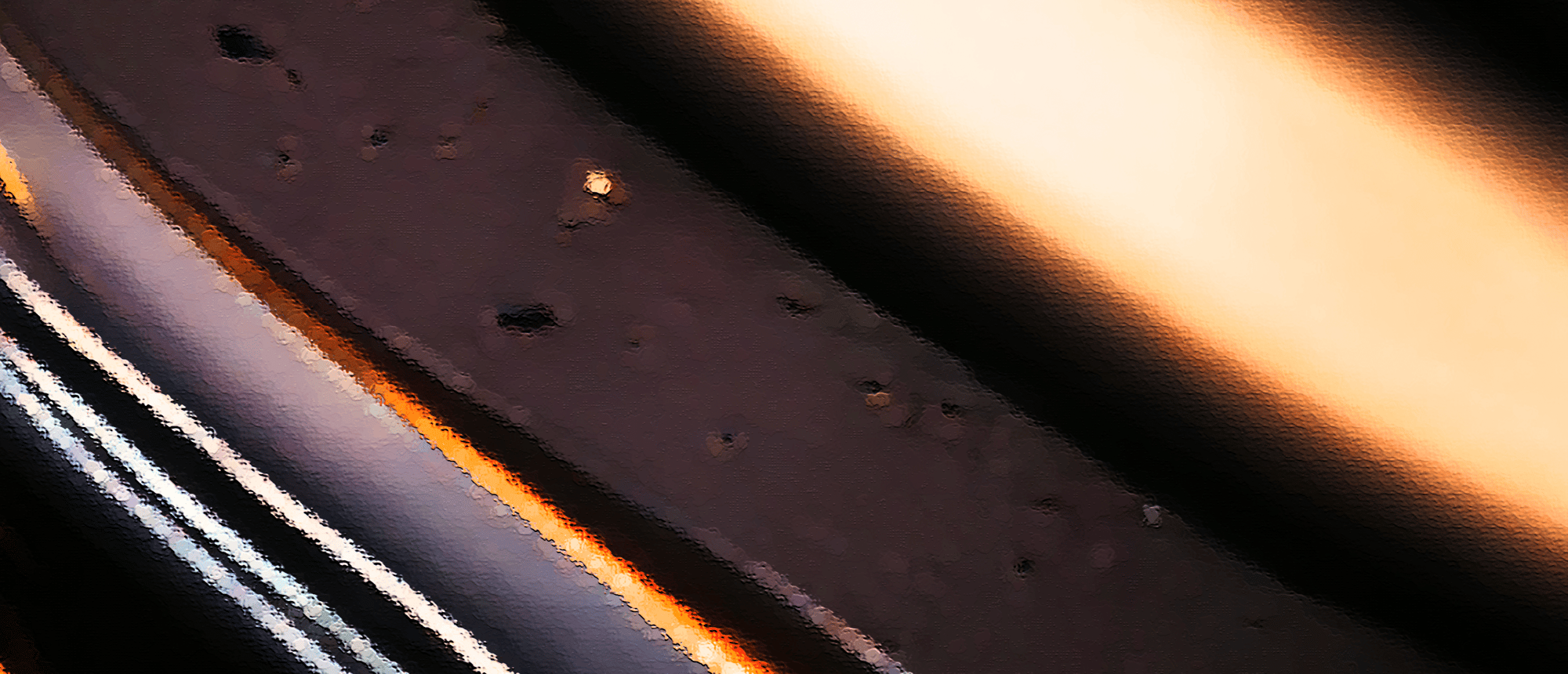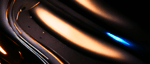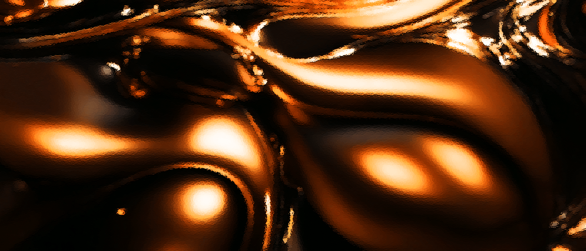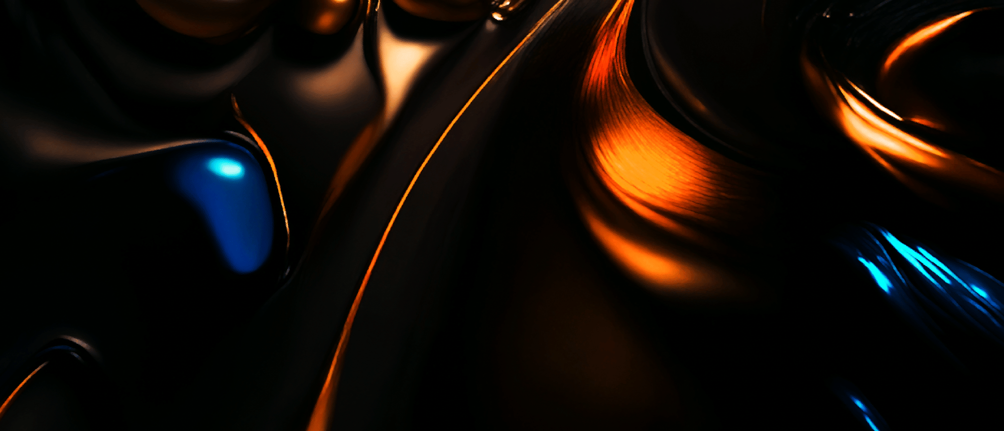 The palette is almost orchestral: dense blacks, burning bronze and sudden flashes of electric blue. Light slides along the surface like fingertips, carving out curves that feel both organic and mechanical. Hidden in the folds, the smiling face becomes a kind of inner guide – the part of us that watches calmly while everything else melts and reshapes.