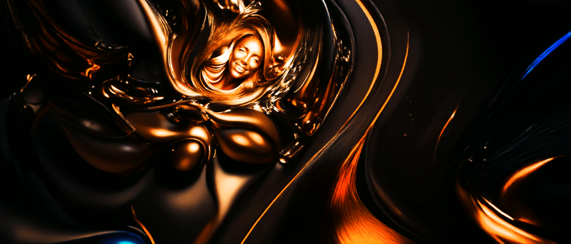In HYPNO, Klemenza turns hypnosis into liquid metal. A glowing face emerges from a river of molten gold and black chrome, caught in the exact moment between surrender and awakening. The forms swirl like slow-motion waves inside the mind, at once sensual and unsettling, pulling the viewer into a private trance.
