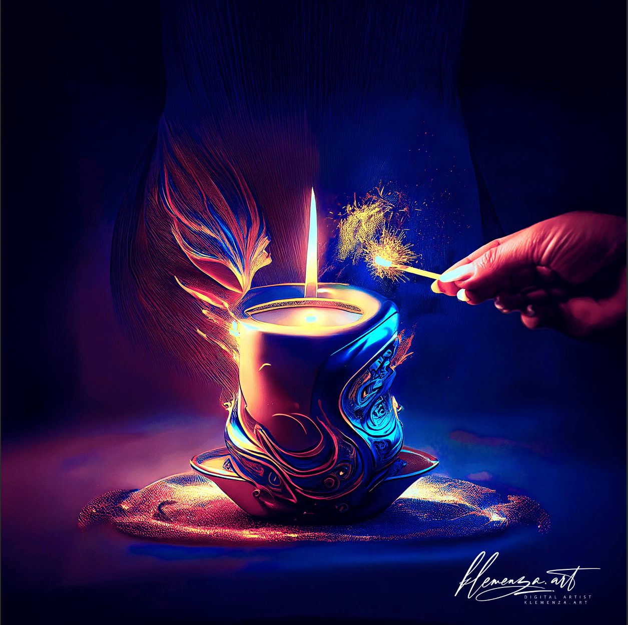 🎨 Curatorial Review : In Ignition, Morten Klemenza turns the smallest gesture — lighting a candle — into a study of creation itself. The scene glows with reverence: a single human hand, a trembling flame, and the electric shimmer of possibility. This is not just fire; it is the spark of civilization, the rebirth of light, the proof that wonder hides in the ordinary. Rendered with precision and surreal restraint, the work balances mystery with warmth — minimal in form, infinite in meaning. Klemenza reminds us that illumination is never just physical. It’s spiritual ignition.
