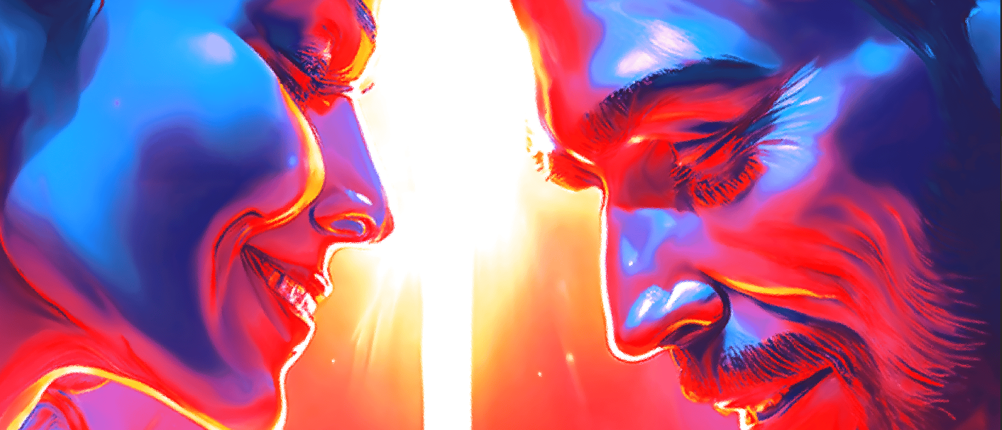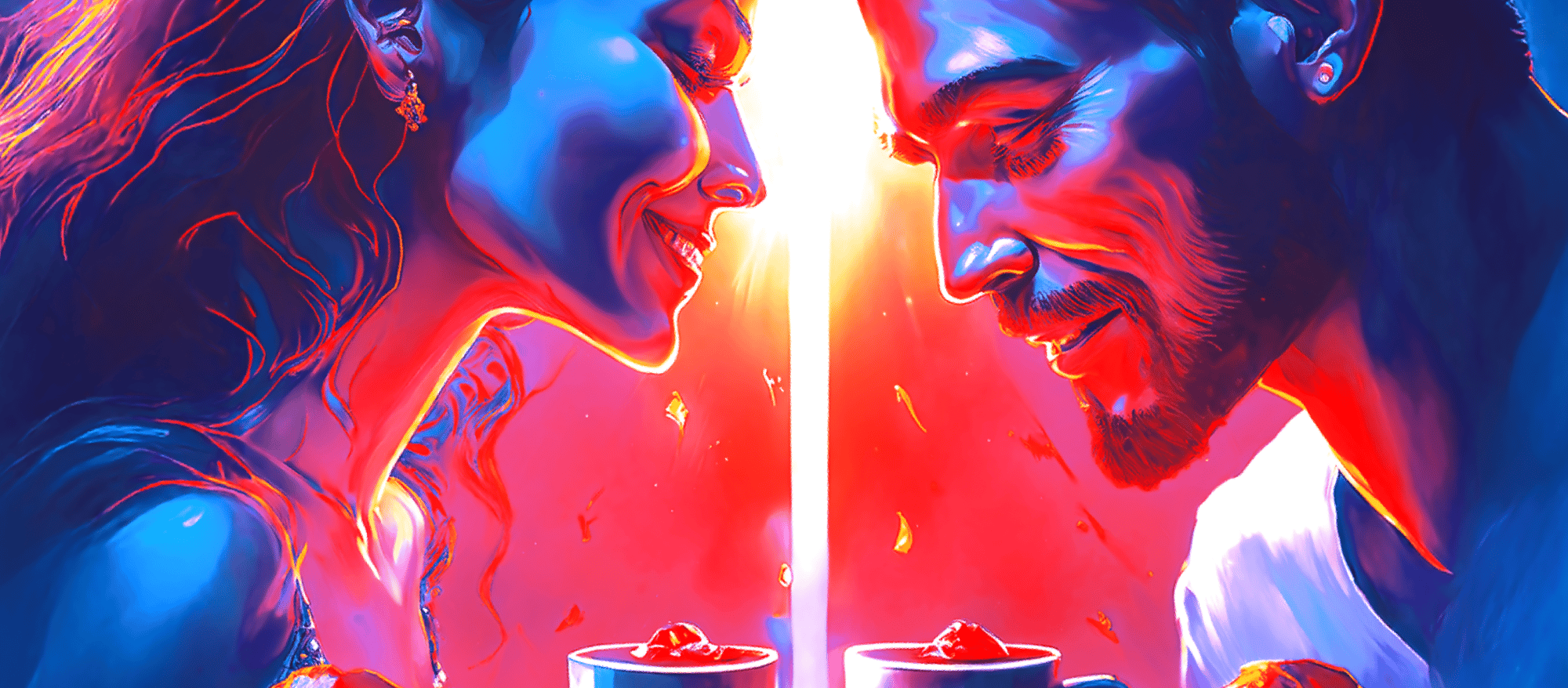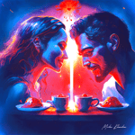 Rachel and James, childhood friends reunited by fate, meet at a humble truckstop café and instantly fall in love. Captured in this digital artwork, the glowing colors and intimate composition evoke the raw, unfiltered emotion of that moment.