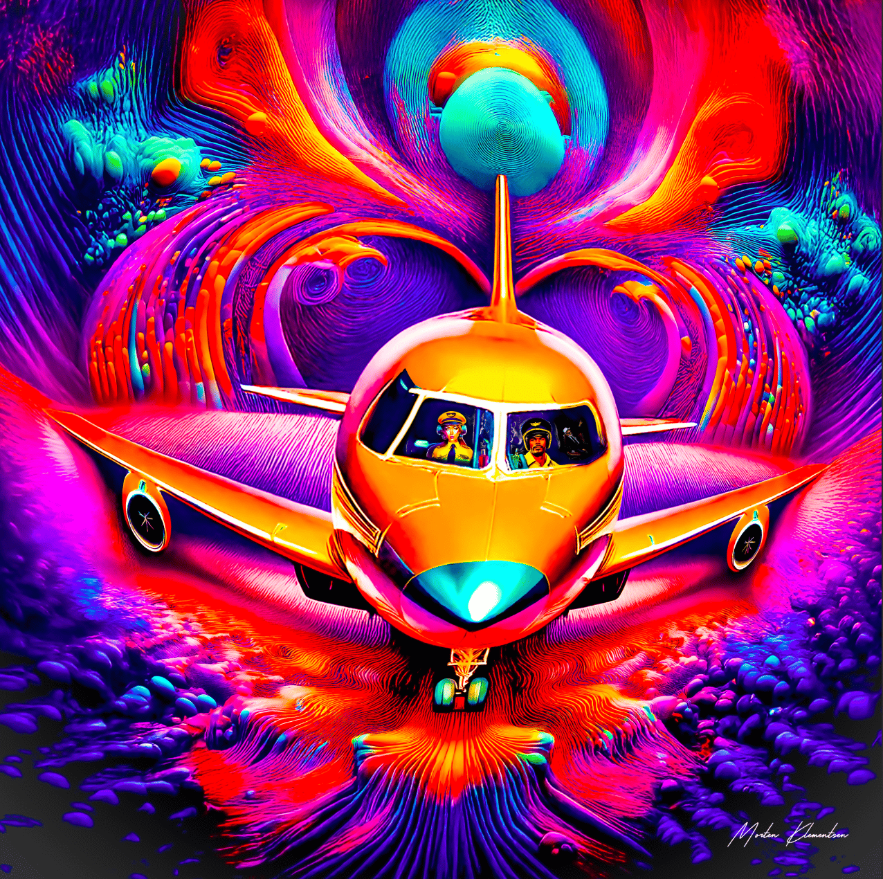 When the rules are ignored and the cockpit becomes a danger zone, co-pilot Mona takes control. In “Just In Time,” digital artist @klemenza.art (aka @Morten Klementsen) visualizes the tension aboard a yellow aircraft—where a reckless rookie captain, a mysterious older man, and hidden illegal cargo collide in mid-air. This dramatic composition (bold yellows, lush jungle backdrop, looming lake, and an alcohol bottle subtly tucked and recorded) captures the moment where fear gives way to action, truth, and justice.