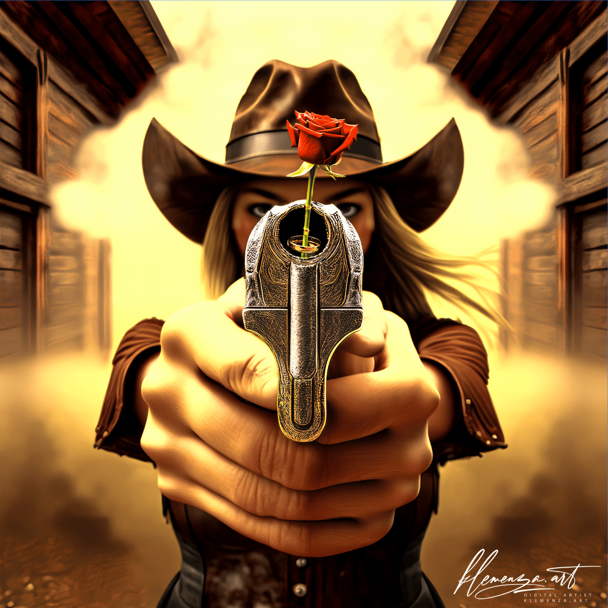 #Klemenza #MakeMyDay #WesternSatire #FineArt #DigitalAlchemy #ContemporaryArt #InvestmentArt #JaneAndHank #VisualStorytelling