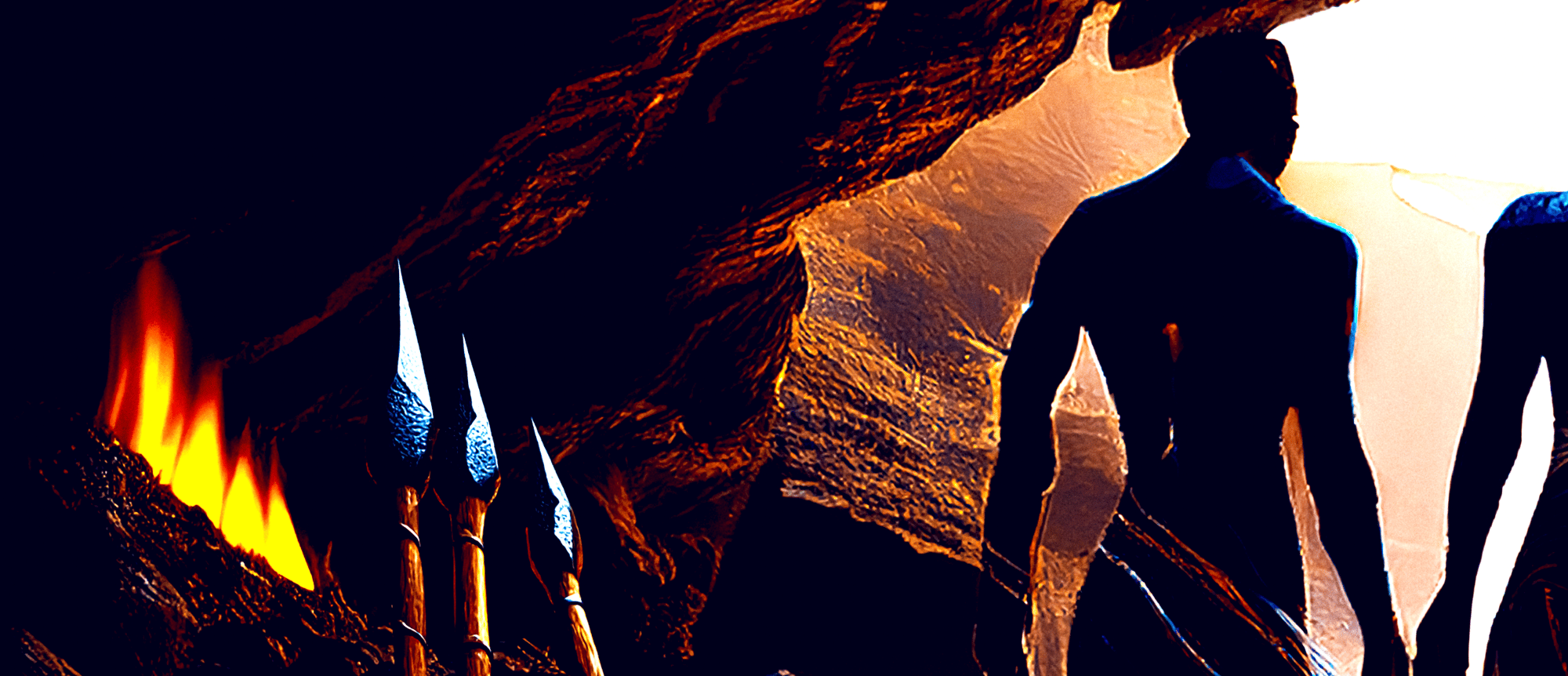 #EmergingFromTheShadows #DigitalArt #SurvivalJourney #HumanEvolution #LightAndDarkness #ArtOfTransformation #HopeInArt #PrehistoricArt