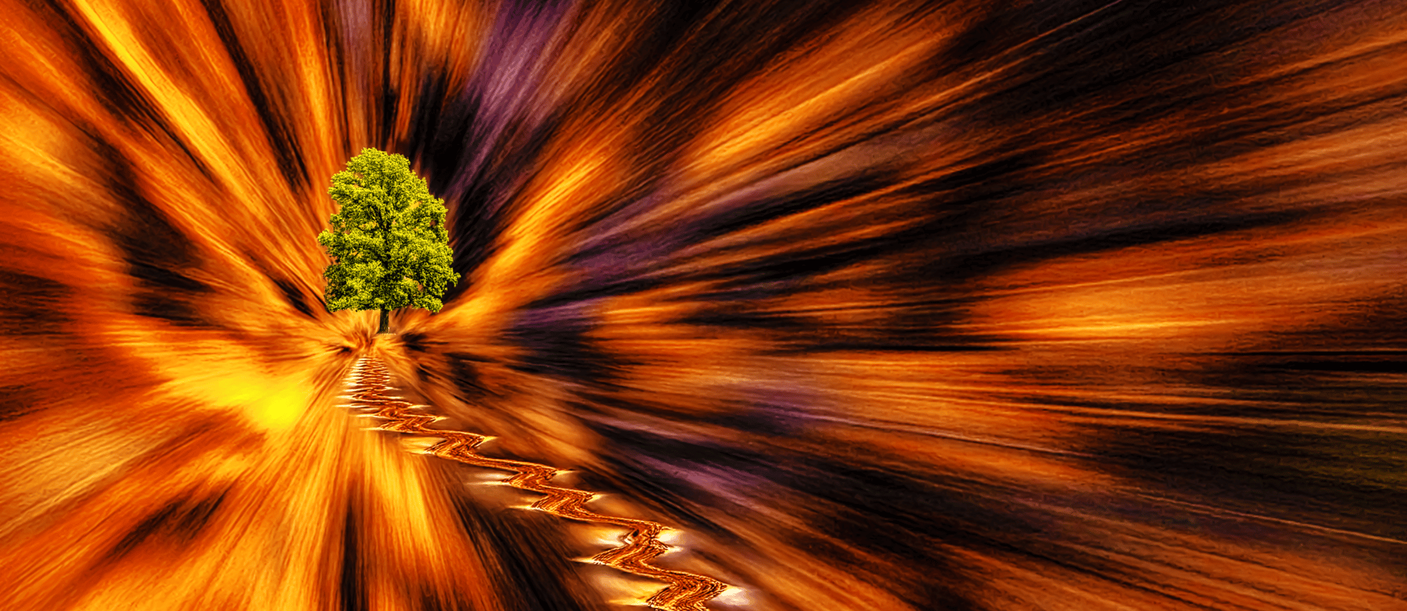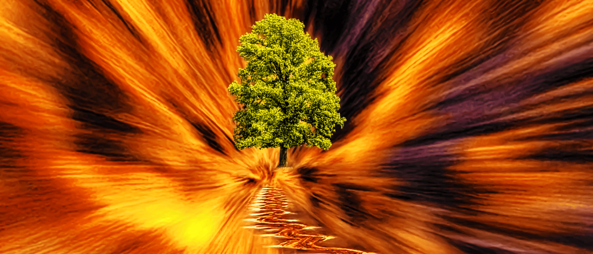 The solitary tree ahead stands as an emblem of hope, life, and the axis mundi anchoring this feverish dreamscape. Yet it floats in an almost hallucinatory space, too distant and too real to offer solace, suggesting that the destination is less a place and more an idea, or perhaps an unattainable truth.