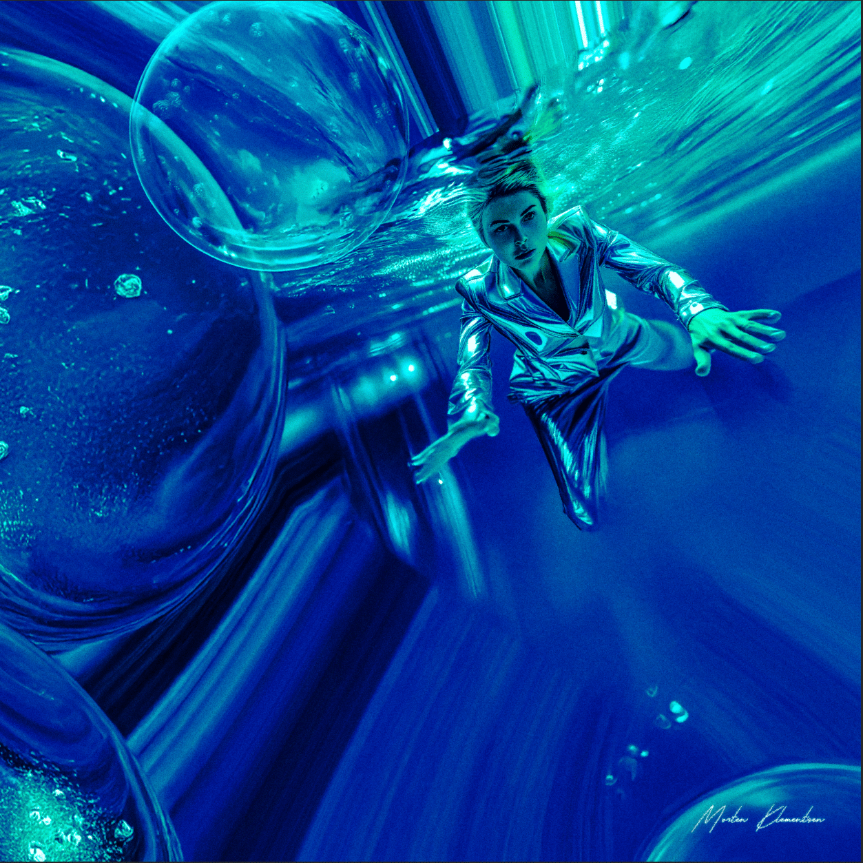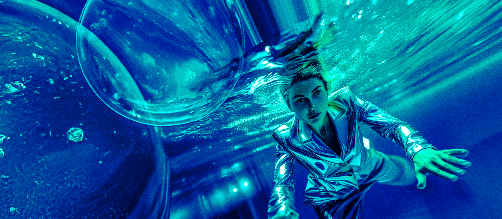 Wearing her metallic stage outfit, Ada dives into the ocean, unaware of the mysterious prisms that appear above the water, leading her to the world beneath. Surrounded by luminous bubbles and prisms, Ada dives deeper, embracing her love for the sea but unable to explain what she encounters.
