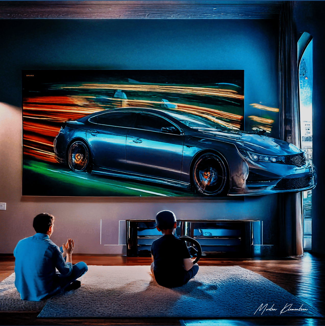 A visually striking exploration of virtual gaming and its impact on our perception of reality. The dynamic energy in the piece is enhanced by cutting-edge AI techniques, offering a glimpse into the future of both gaming and art.