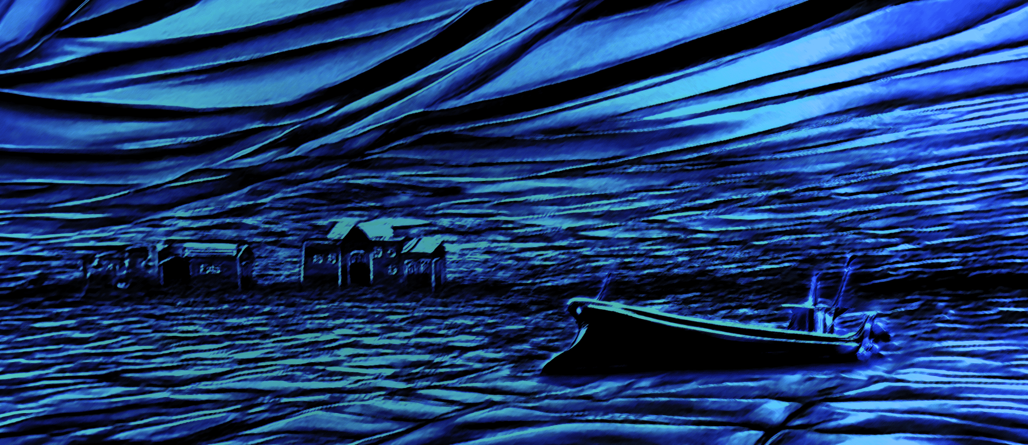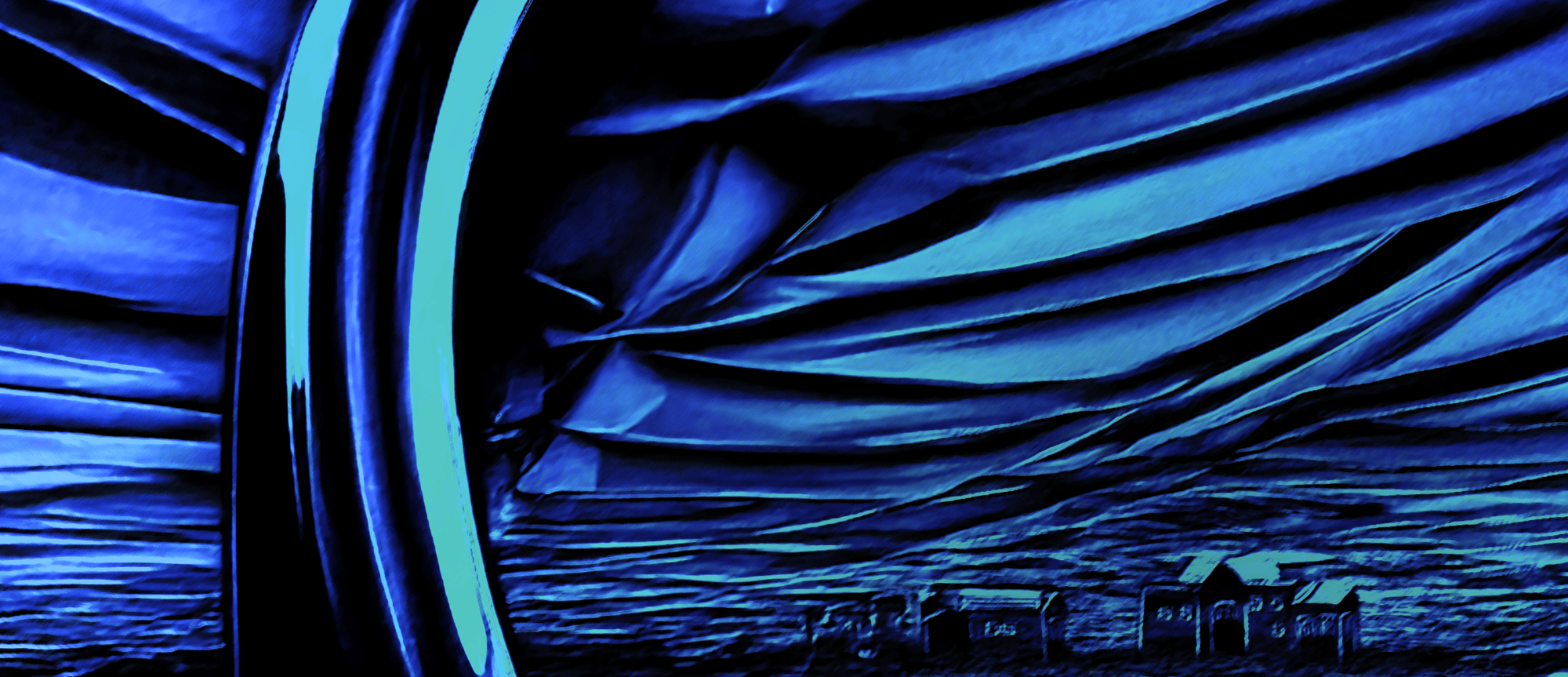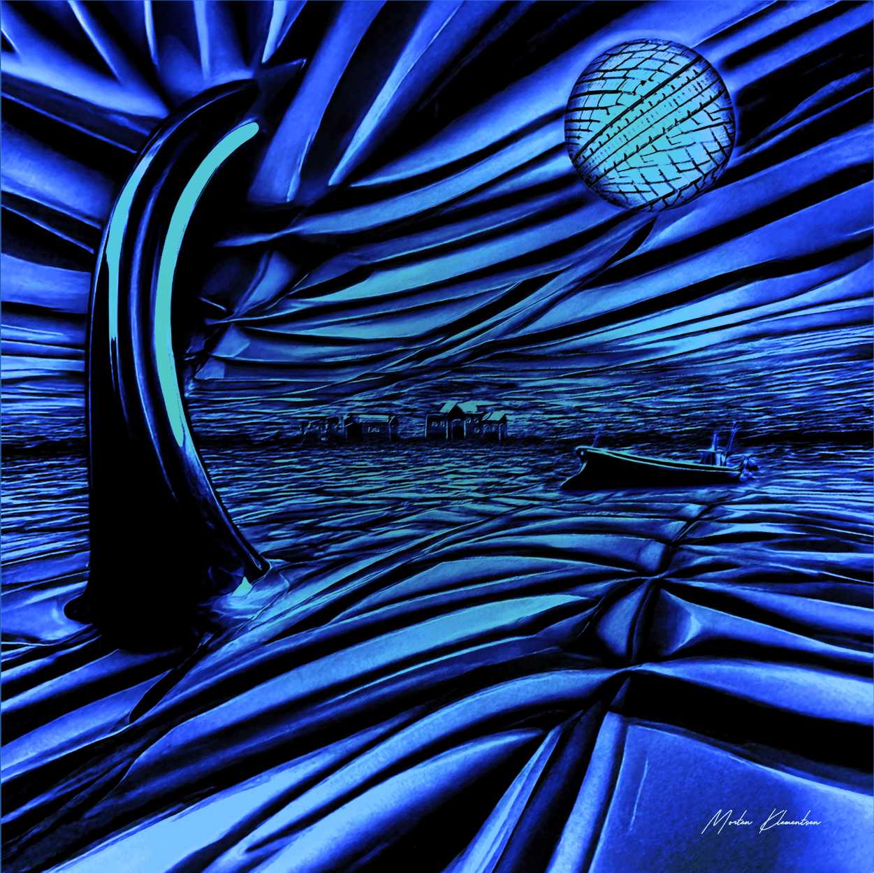 Step into Rubberland, a hidden coastal kingdom built on humanity’s cast-offs. In this powerful piece, digital artist @klemenza.art (aka @Morten Klementsen) transforms pollution into purpose. Tire tracks, a boat adrift, and the tail of a shark weave through a dark, turquoise horizon as a tire-tread moon looms above—symbolizing the beauty and horror of our times. Amid the cracked plastic and coastal debris, recycled homes stand as testament to resilience.
