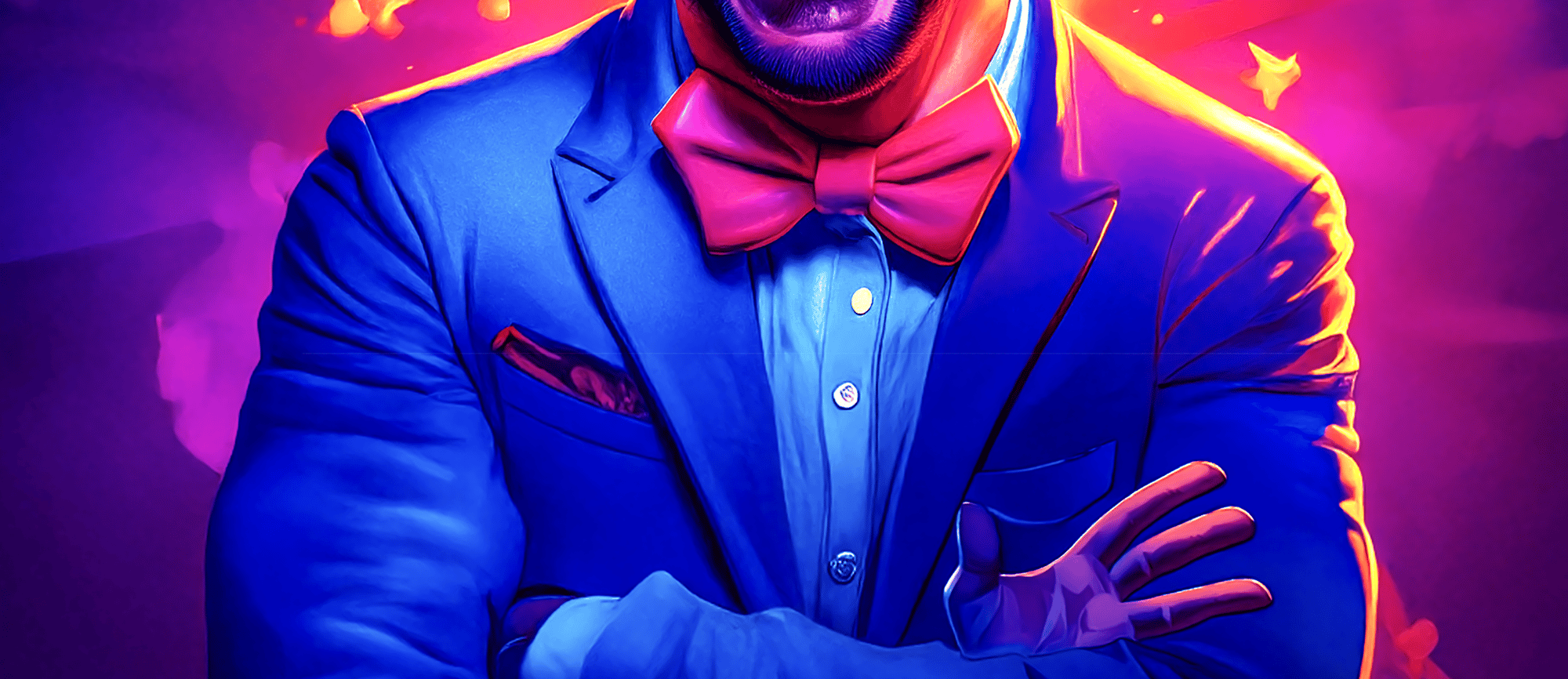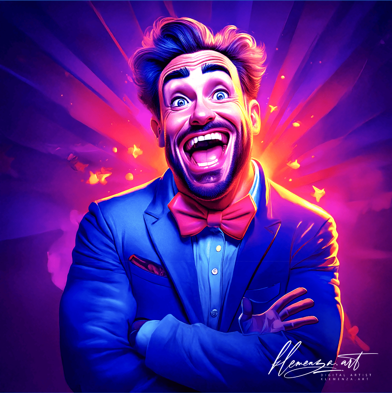 Still Standing captures the paradox of performance — the showman’s smile that hides exhaustion, doubt, and quiet melancholy. Klementsen’s portrait radiates energy, yet beneath the riot of neon lies stillness — a man holding his own mask in place.