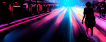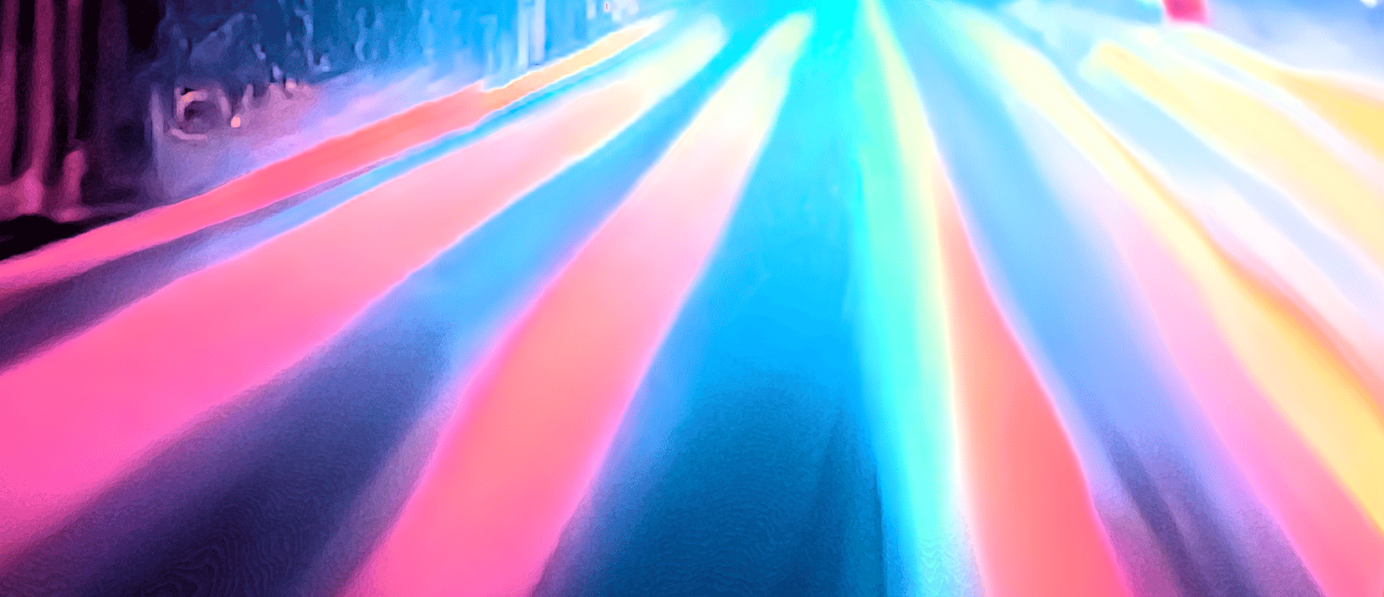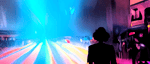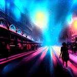 This artwork creates a striking emotional impact through its use of light, color, and composition. The intense glow of neon pinks and blues bathes the scene in a surreal, almost otherworldly atmosphere. This contrast between the vibrant streetlights and the dark, shadowy surroundings evokes a sense of isolation and introspection. The lone figure walking down the empty street adds to this feeling—there’s a palpable sense of solitude, perhaps even melancholy, as the person moves forward into the light but remains separated from it.
