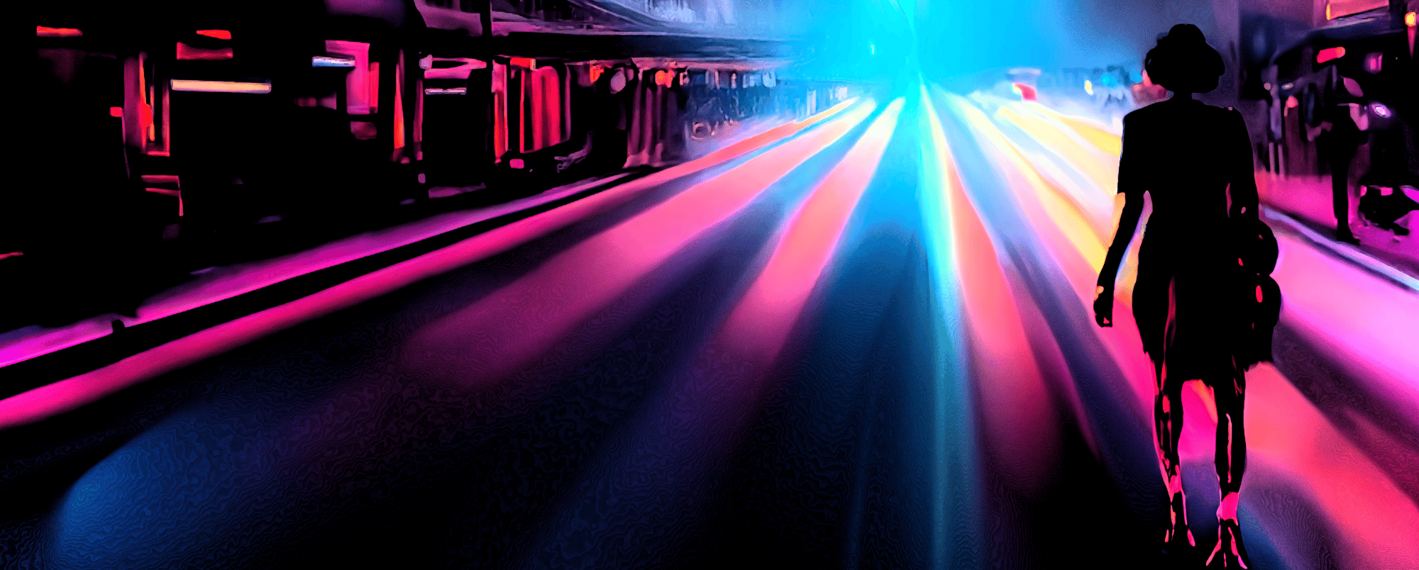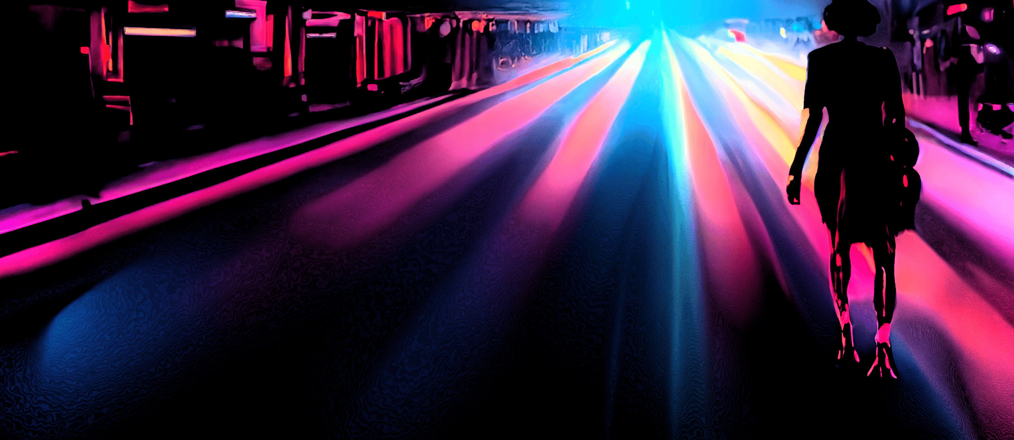 #LongWalkArt #UrbanSurrealism #AIArtistry #EmotionalJourney #NeonDreamscape