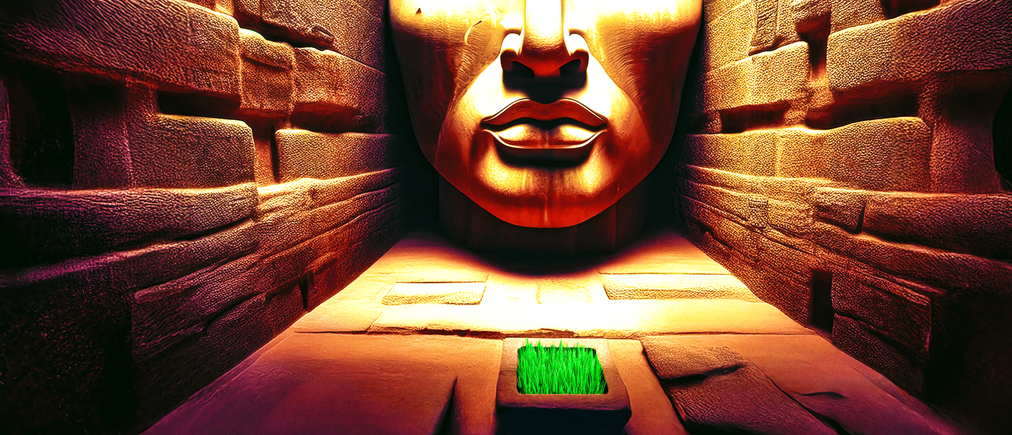 🖼️ Curatorial text: Curatyy™ : The Maze Maker invites us into a world where creation and entrapment share the same breath. A digital colossus carved in light and stone, it gazes upon its maker — the man who built the labyrinth only to vanish inside it. Every shadow feels like a thought, every wall a memory. The warm golden tones evoke lost civilizations, while the single glint of green life reminds us: hope still grows even in confinement.